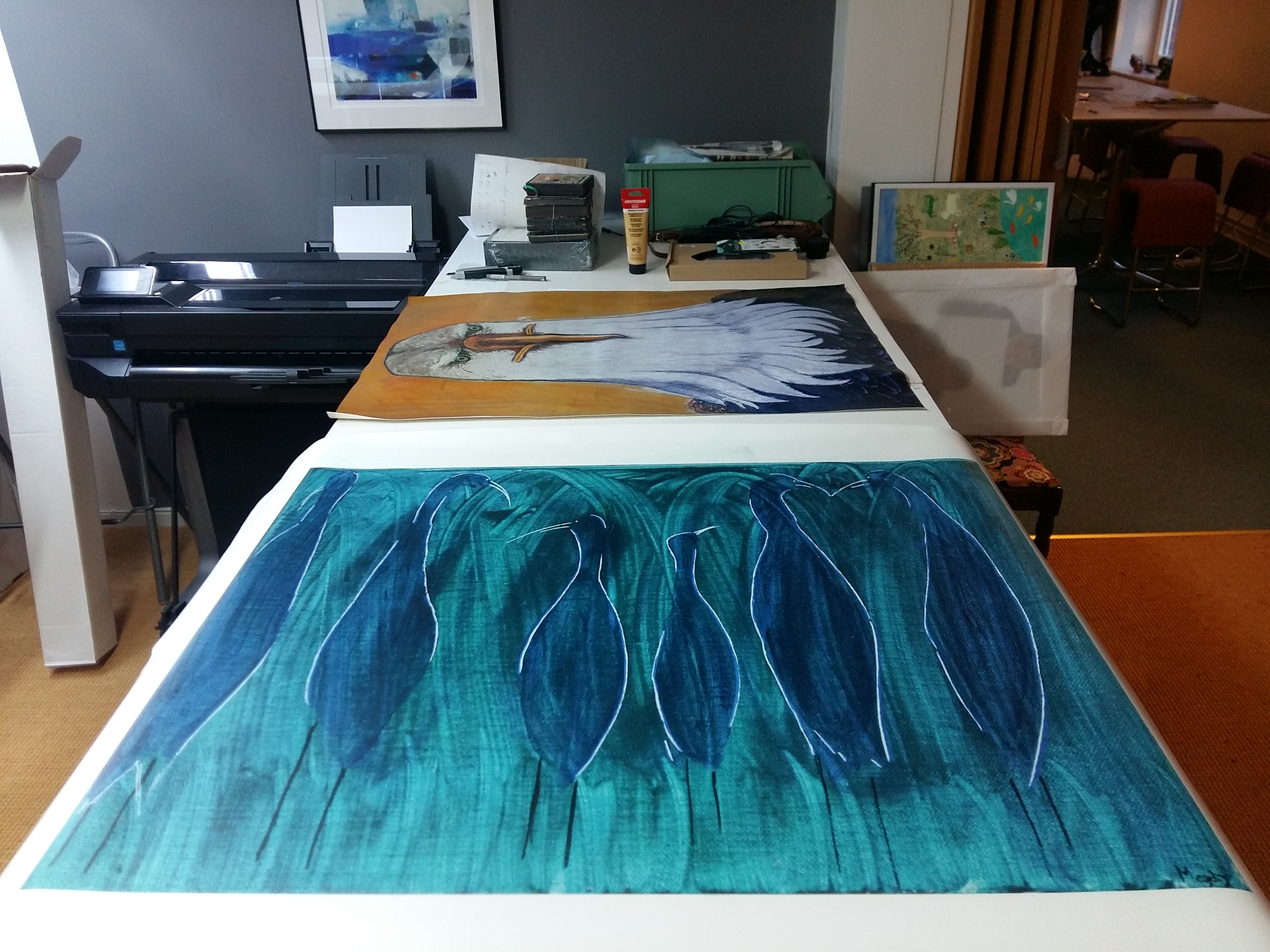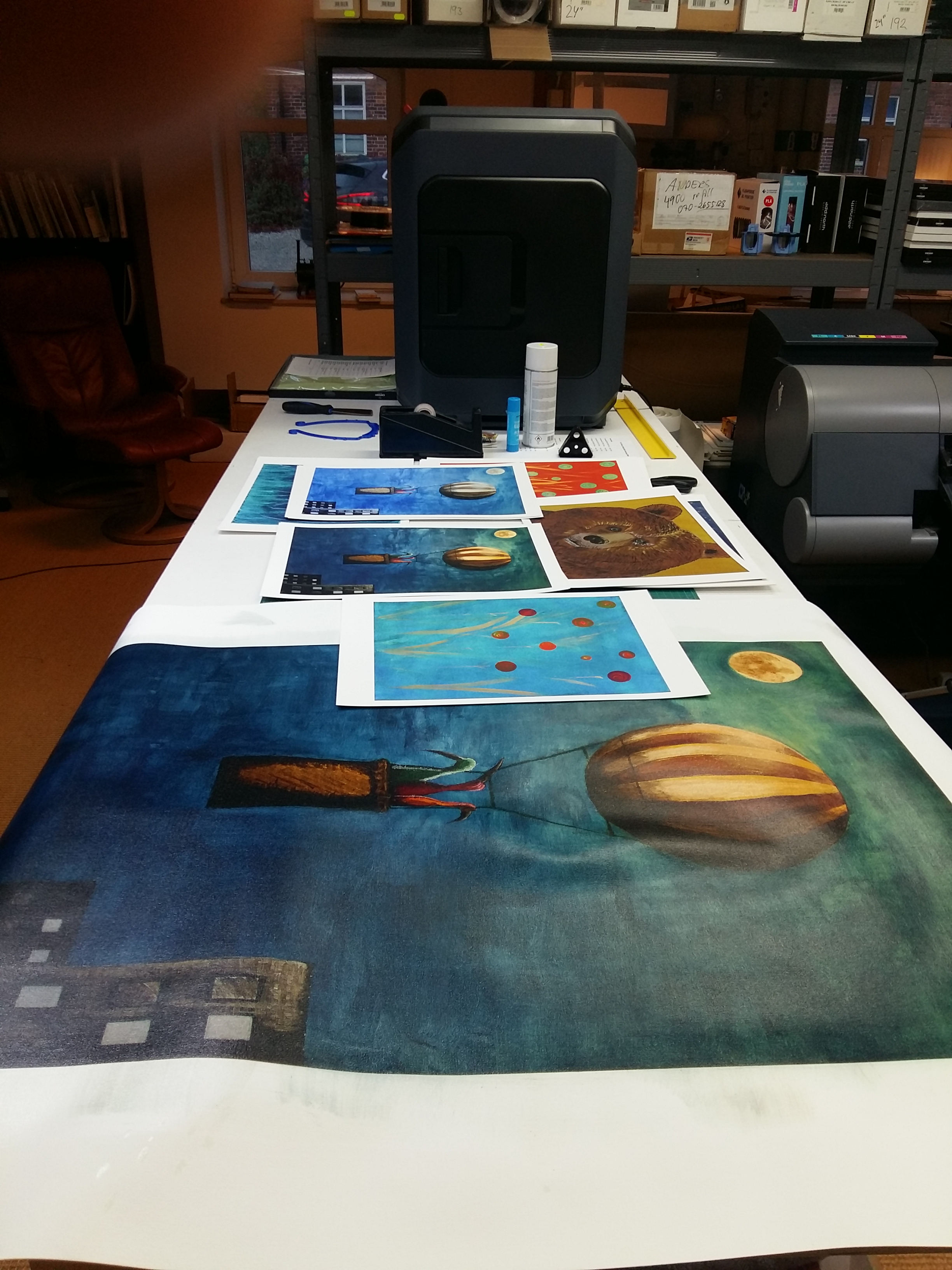 Han hade på eget bevåg – till min enorma förtjusning – provat att trycka på gigantiska canvas. Att se mina målningar klona sig och ta ny form är science fiction för en icke-teknisk person (moi).